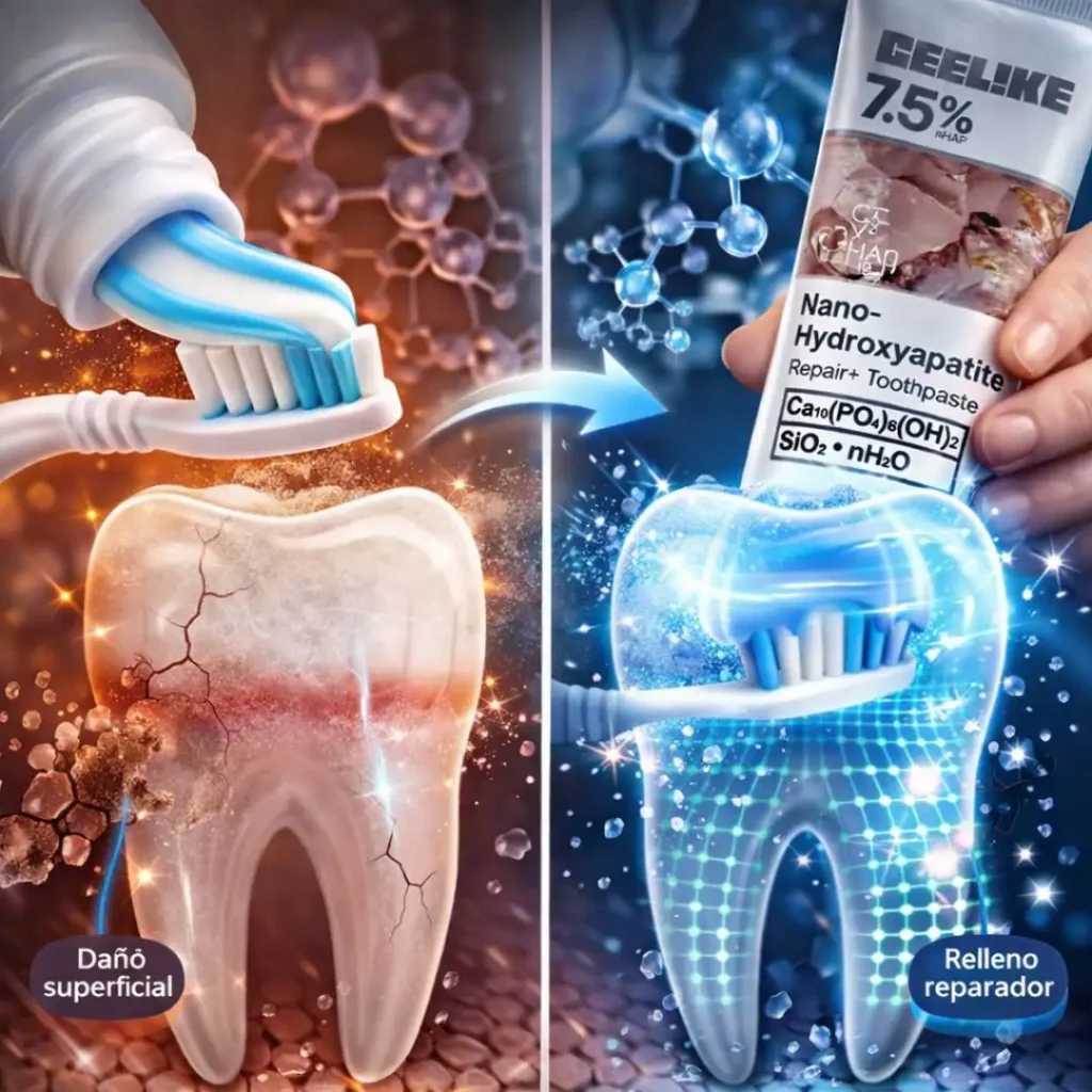 Sí. Su ingrediente principal, la nano-hidroxiapatita, es bioidéntico al esmalte dental y ayuda a remineralizar, reparar y fortalecer los dientes de forma comprobada.